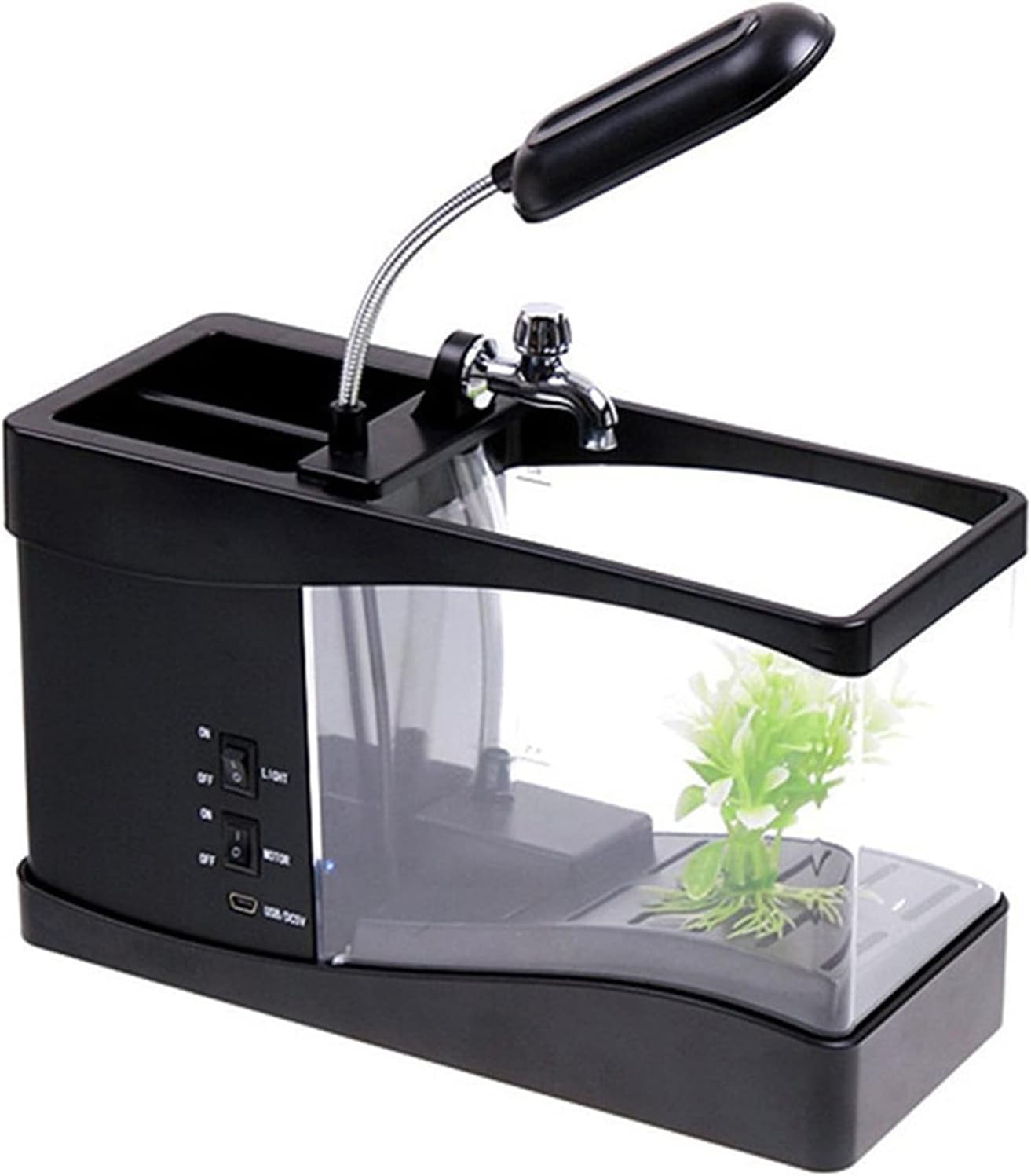 The aquarium features a built-in circulation system that continuously refreshes the water, providing clean oxygen for the fish.