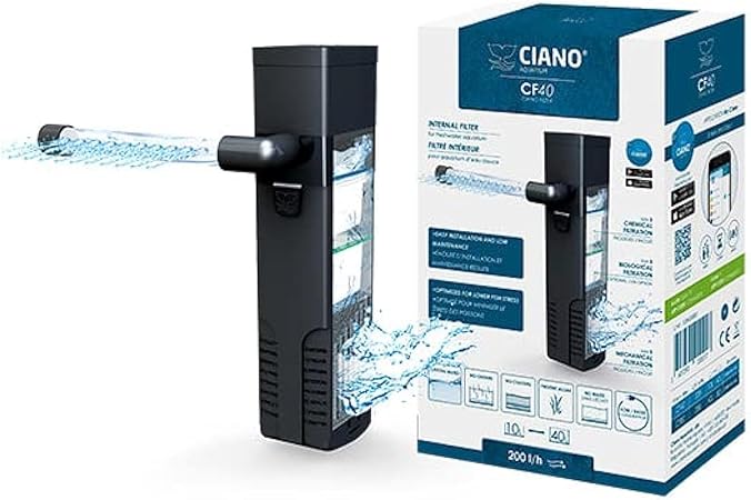 Compact Internal Filter – Ciano CF40 aquarium filter with a flow rate of 200 L/h, perfect for small to medium aquariums.